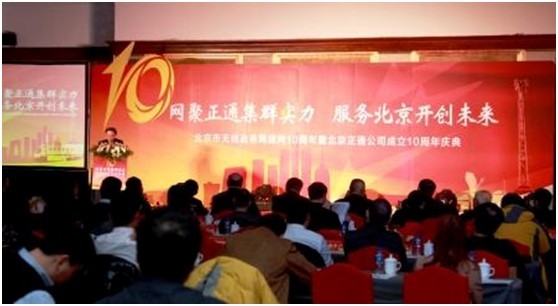 2013年1月8日公司在北京國賓酒店隆重召開北京市無線政務(wù)網(wǎng)建網(wǎng)十周年暨北京正通公司成立十周年慶?;顒?。