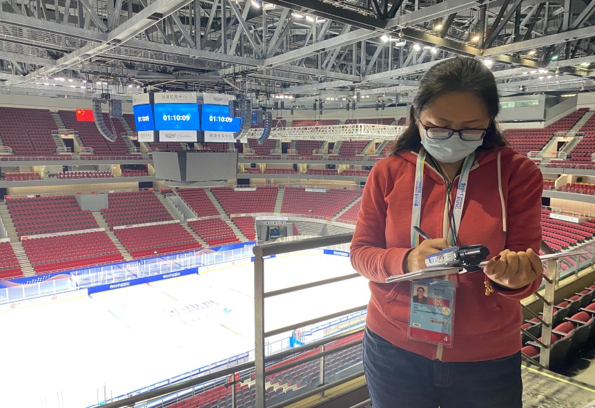 (2008年夏奧會、2021冬奧會測試活動正通同一員工在五棵松體育中心進行工作巡檢)