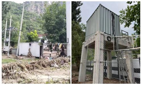 房山六渡基站地處大石河河道,“23.7”暴雨,該基站集裝箱機房被沖毀,機房內(nèi)設(shè)備全部損壞,本次重建項目,機房基礎(chǔ)架地基下挖近4米,地面高4米,已超過“23.7”水毀淹沒深度,確保惡劣環(huán)境下機房及設(shè)備的安全穩(wěn)定運行。